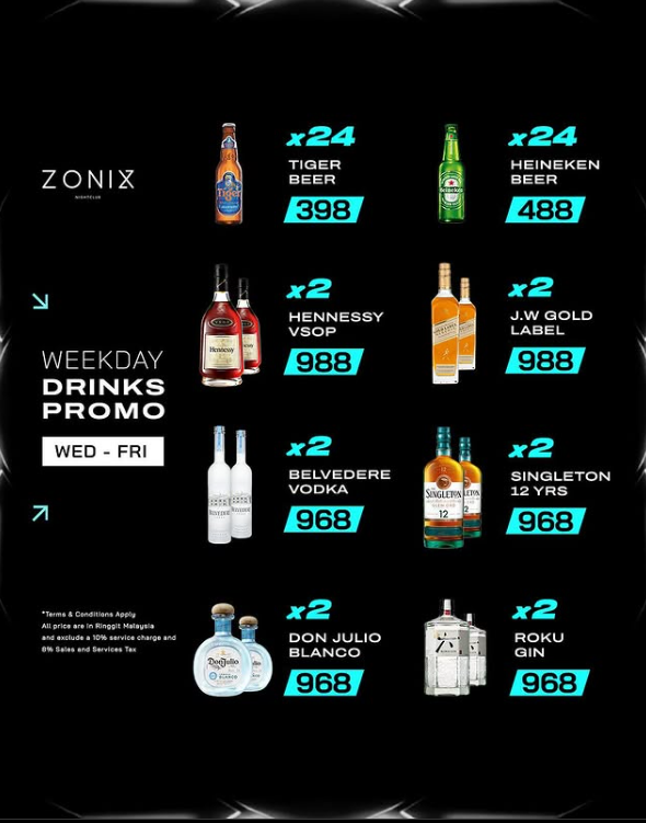 Zonix Club 的主题派对,绝对是每一位派对迷的梦想!每周都有不同的主题派对,确保你每一次来都有全新的体验。无论是充满女性魅力的“Ladies Night”,还是畅饮无限的“Free Flow Night”,每场派对都会让你眼前一亮!而最狂热的“Weekend Madness”更是让你彻底释放内心的疯狂,享受无尽的欢愉时光。